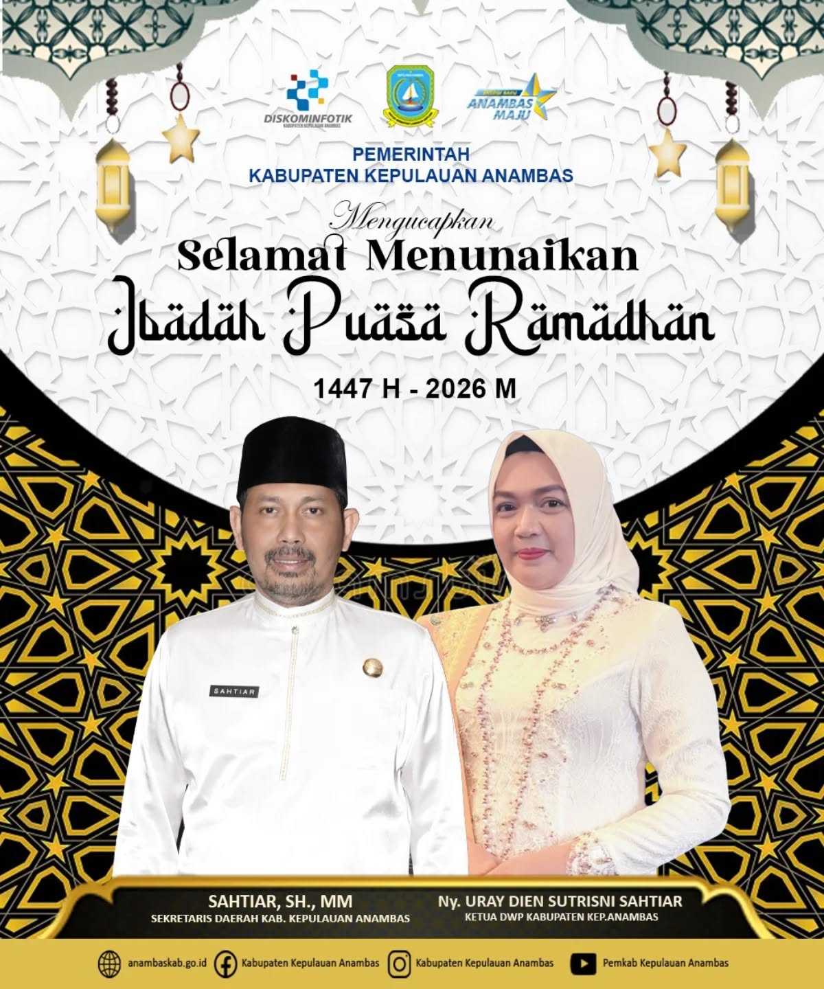 Sekretaris Daerah Kabupaten Kepulauan Anambas beserta Istri mengucapkan Selamat Menjalankan Ibadah Puasa 1447 H / 2026 M.