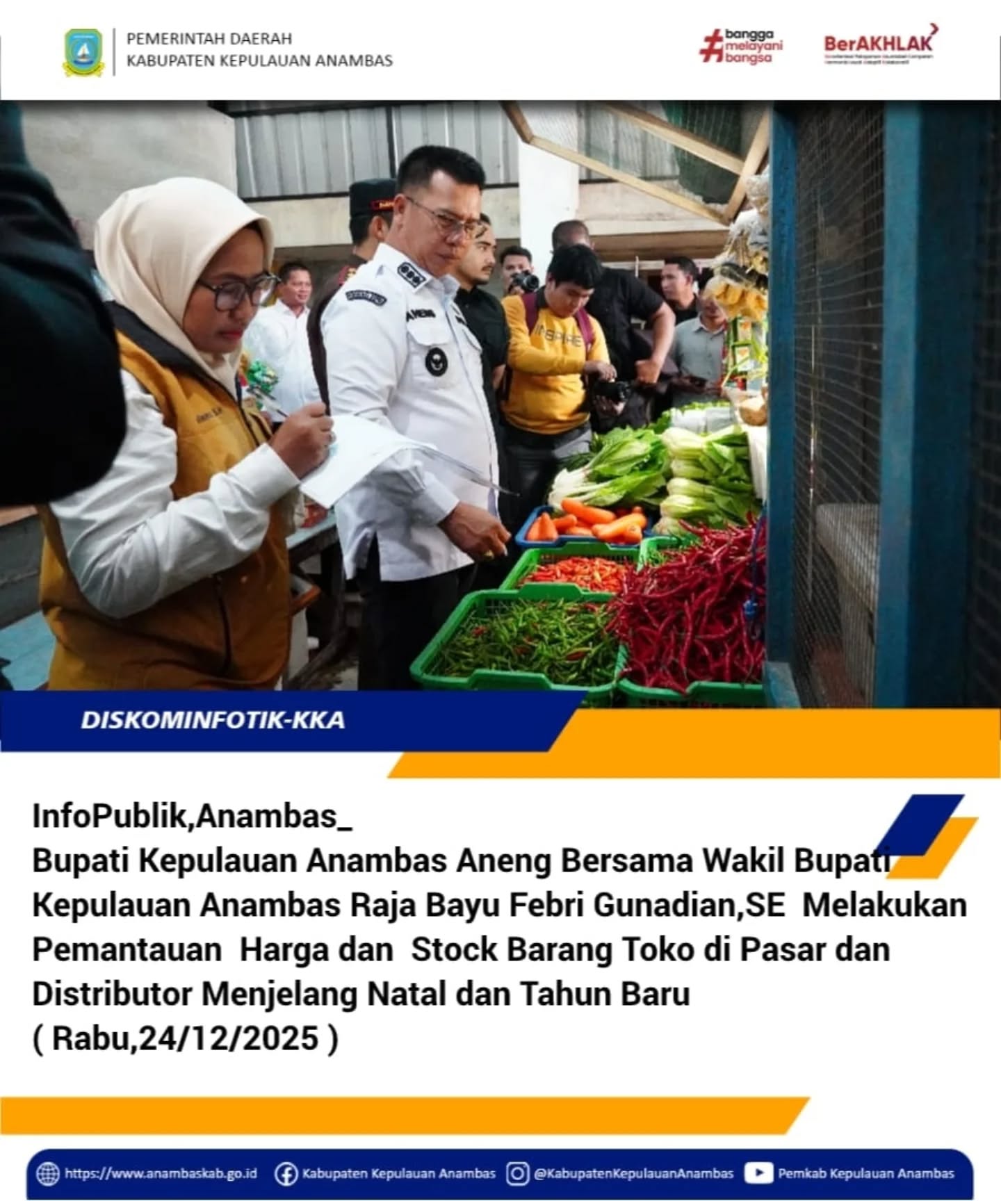 Infopublik,Anambas- Bupati Kabupaten Kepulauan Anambas Aneng Bersama Wakil Bupati Kabupaten Kepulauan Anambas Raja Bayu Febri Gunadian S.E Melakukan Pemantauan Harga dan Stok Barang di Toko Pasar dan Distributor Menjelang Natal dan Tahun Baru (Rabu,24/12/2025)