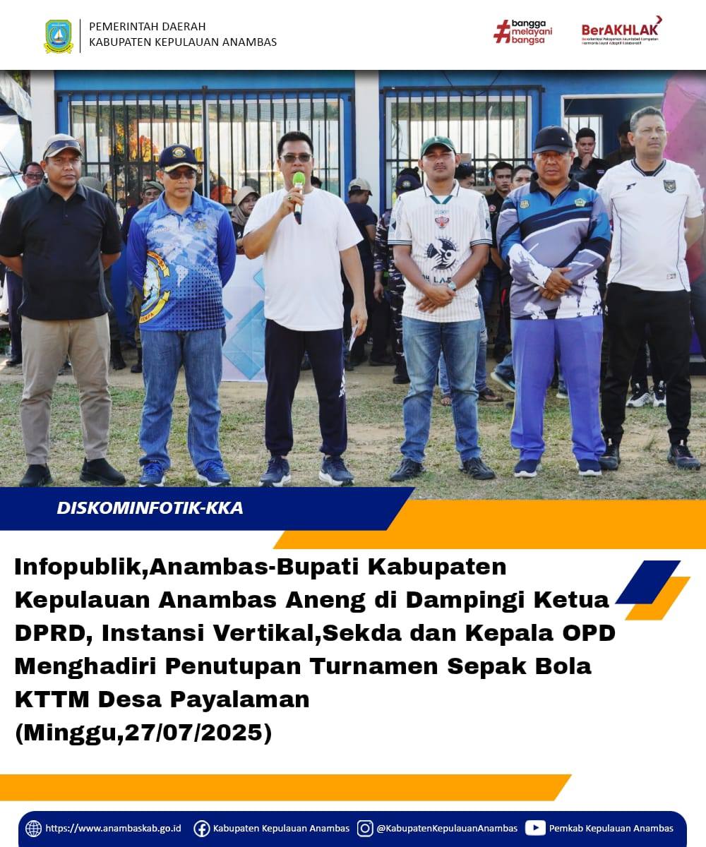 Infopublik,Anambas-Bupati Kabupaten Kepulauan Anambas Aneng di Dampingi Ketua DPRD,instansi Vertikal Sekda dan Kepala OPD Menghadiri Penutupan Turnamen Sepak Bola KTTM Desa Payalaman (Minggu,27/07/2025)