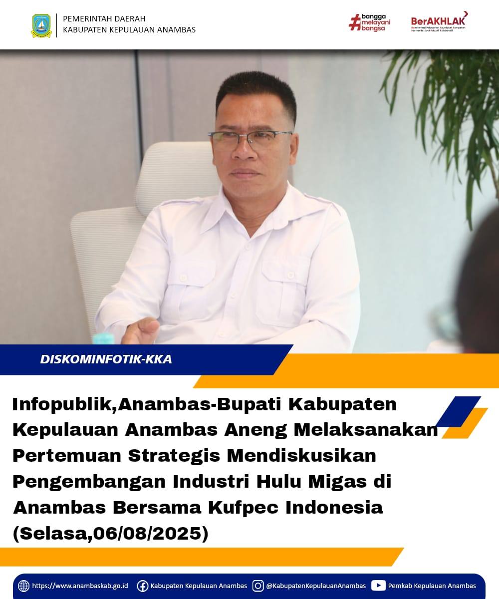 Infopublik,Anambas-Bupati Kabupaten Kepulauan Anambas Aneng Melaksanakan Pertemuan Strategis Mendiskusikan Pengembangan Industri Hulu Migas di Anambas Bersama Kufpec Indonesia (Selasa,06/08/2025)