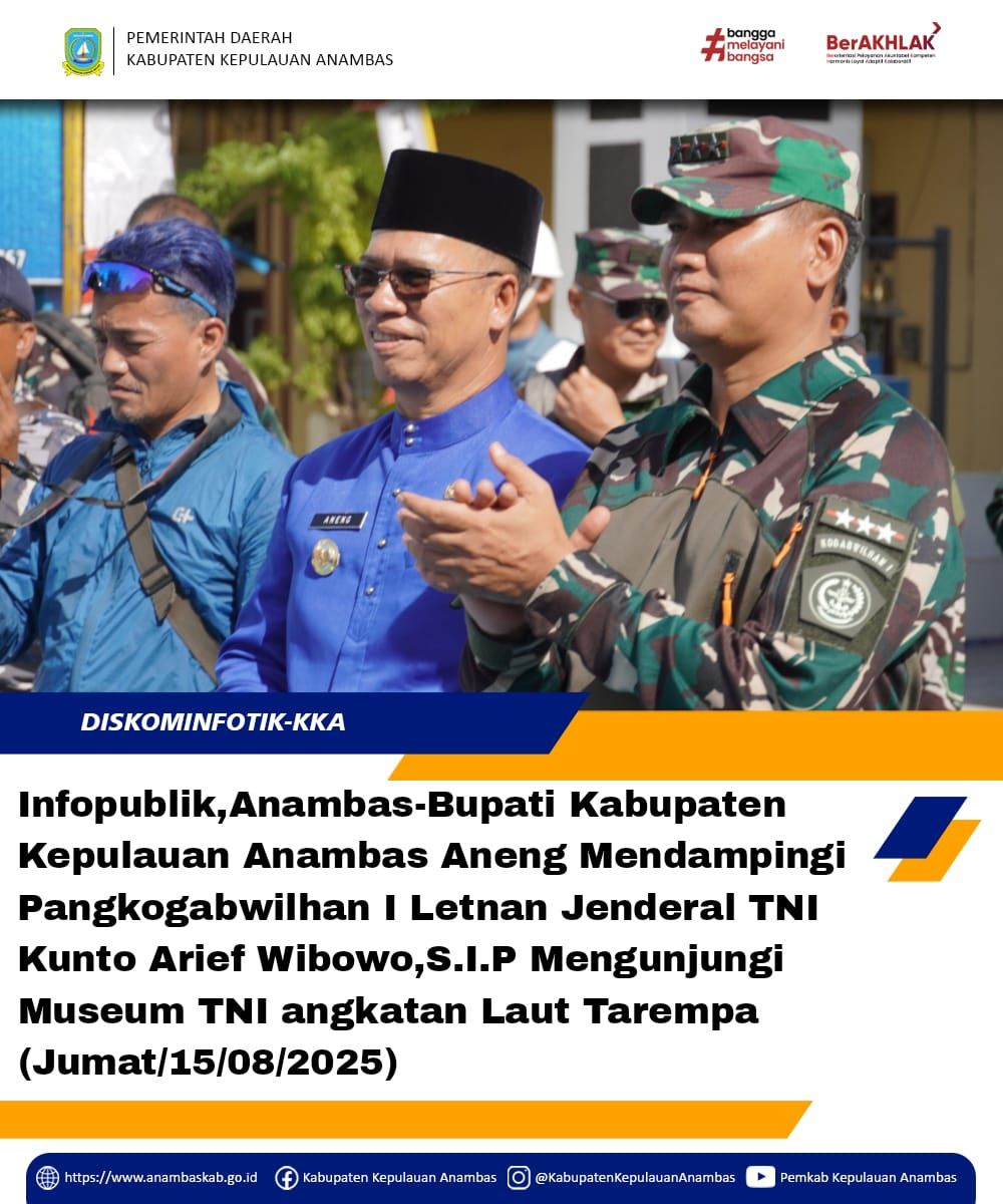 Infopublik,Anambas- Bupati Kabupaten Kepulauan Anambas Aneng Mendampingi pangkogabwilhan I Letnan Jenderal TNI Kunto Arief Wibowo,S.I.P Mengunjungi Musium TNI Angkatan Laut Tarempa (Jum'at,15/08/2025)
