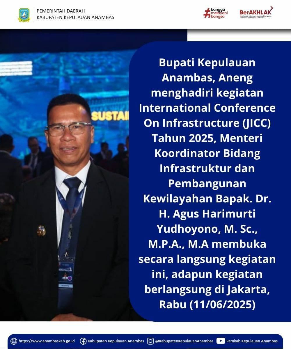 Infopublik,Anambas-Bupati Kabupaten Kepulauan Anambas Aneng Menghadiri Kegiatan Internasional Conference on Infrastruktur dan Pembangunan Kewilayahan Bapak Dr.H. Agus Harimurti Yudhoyono,M.Sc., M.P.A., M.A Membuka Secara Langsung Kegiatan ini,adapun kegiatan berlangsung di Jakarta Rabu,11/06/2025