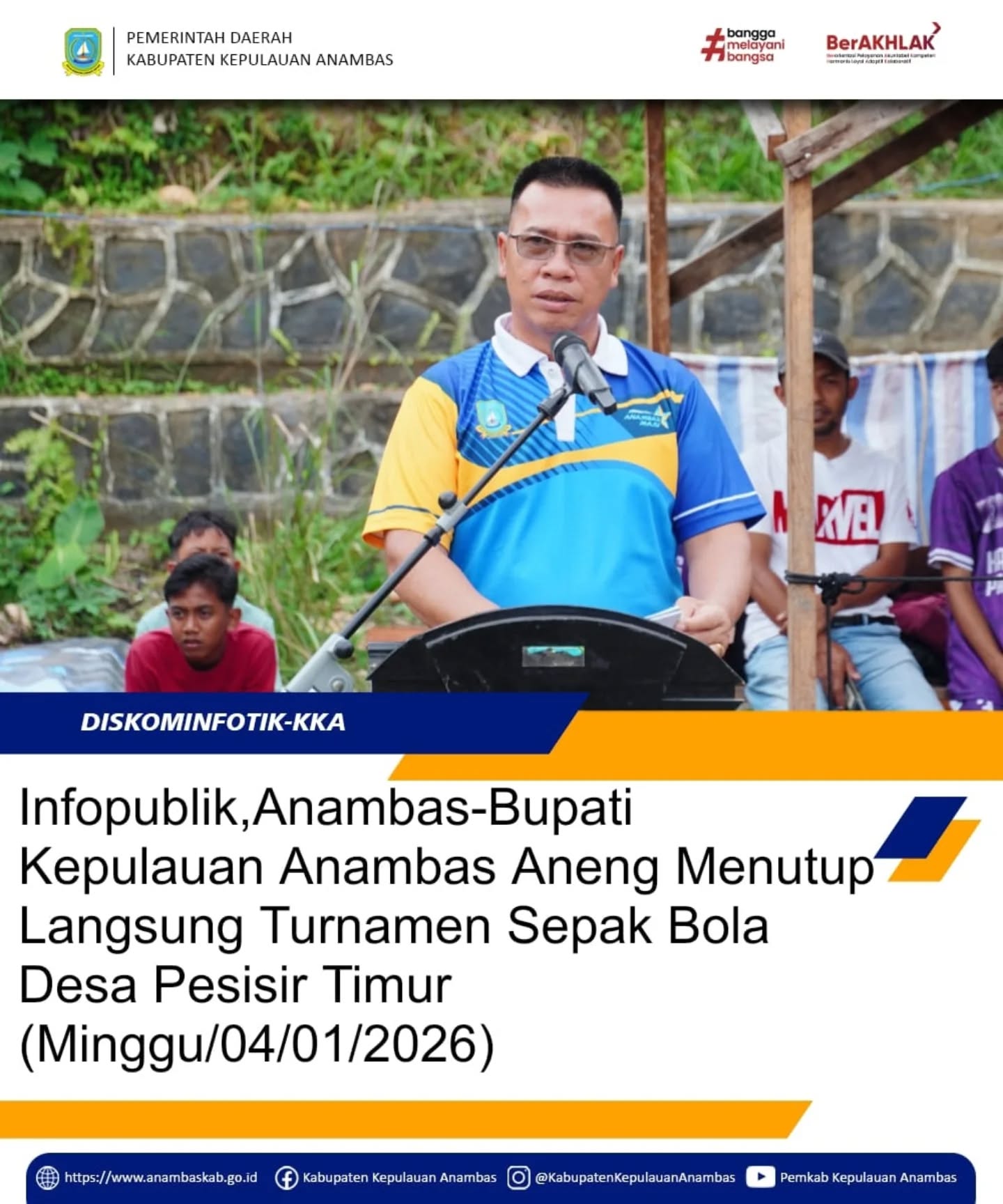Infopublik,Anambas- Bupati Kabupaten Kepulauan Anambas Aneng Menutup Langsung Turnamen Sepak Bola Desa Pesisir Timur Minggu,04/01/2026