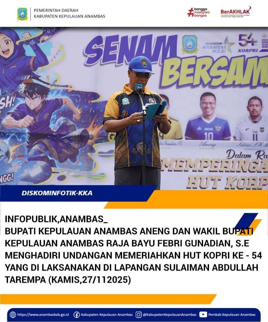 Infopublik, Anambas-Bupati Kepualauan Anambas Aneng dan wakil Bupati Kepulauan Anambas Raja Bayu Febri Gunadian, S.E Menghadiri Undangan Memeriahkan HUT KORPRI KE-54 Yang Dilaksanakan Di Lapangan Sulaiman Abdullah Tarempa (Kamis/27/11/2025)