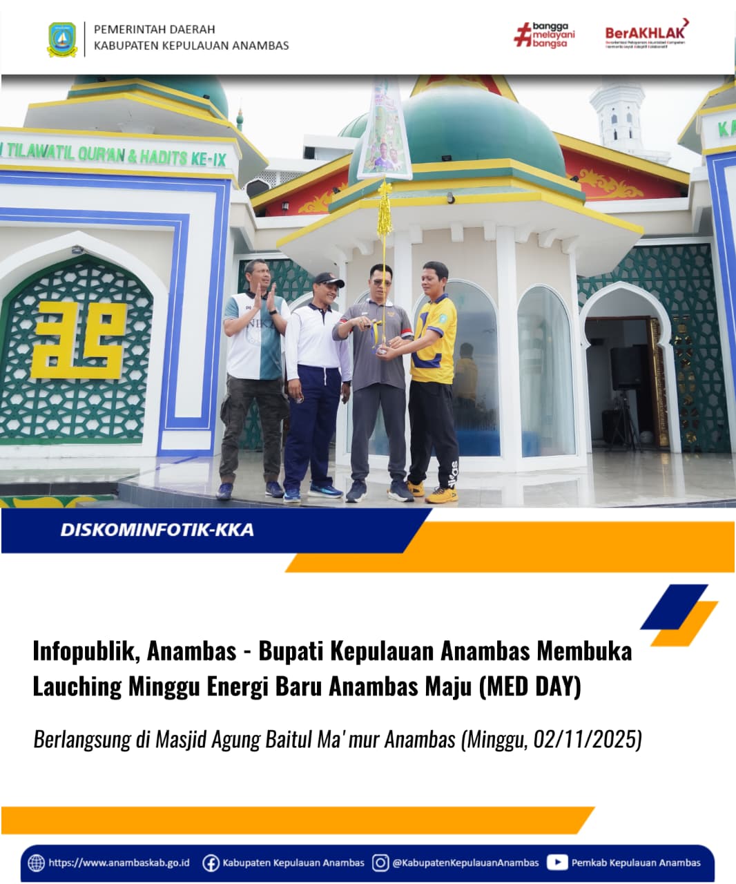 InfoPublik, Anambas - Bupati Kepulauan Anambas, Aneng dan Wakil Bupati Kepulauan Anambas, Raja Bayu Febri Gunadian, S.E hadir pada kegiatan MEB DAY kegiatan berlangsung di Astaka area Mesjid Agung Baitul Makmur, Minggu (02/11/2025)