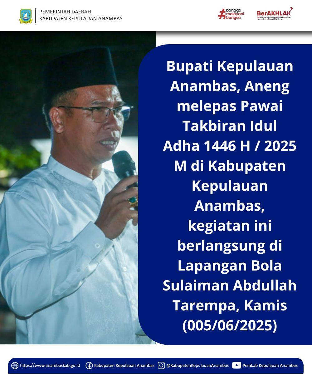 "Untuk itu mari kita jadikan momentum pawai takbiran Idul Adha 1446 H / 2025 M ini sebagai landasan untuk membangun kebersamaan dalam mensukseskan pembangunan didaerah Kabupaten Kepulauan Anambas yang kita cintai ini."