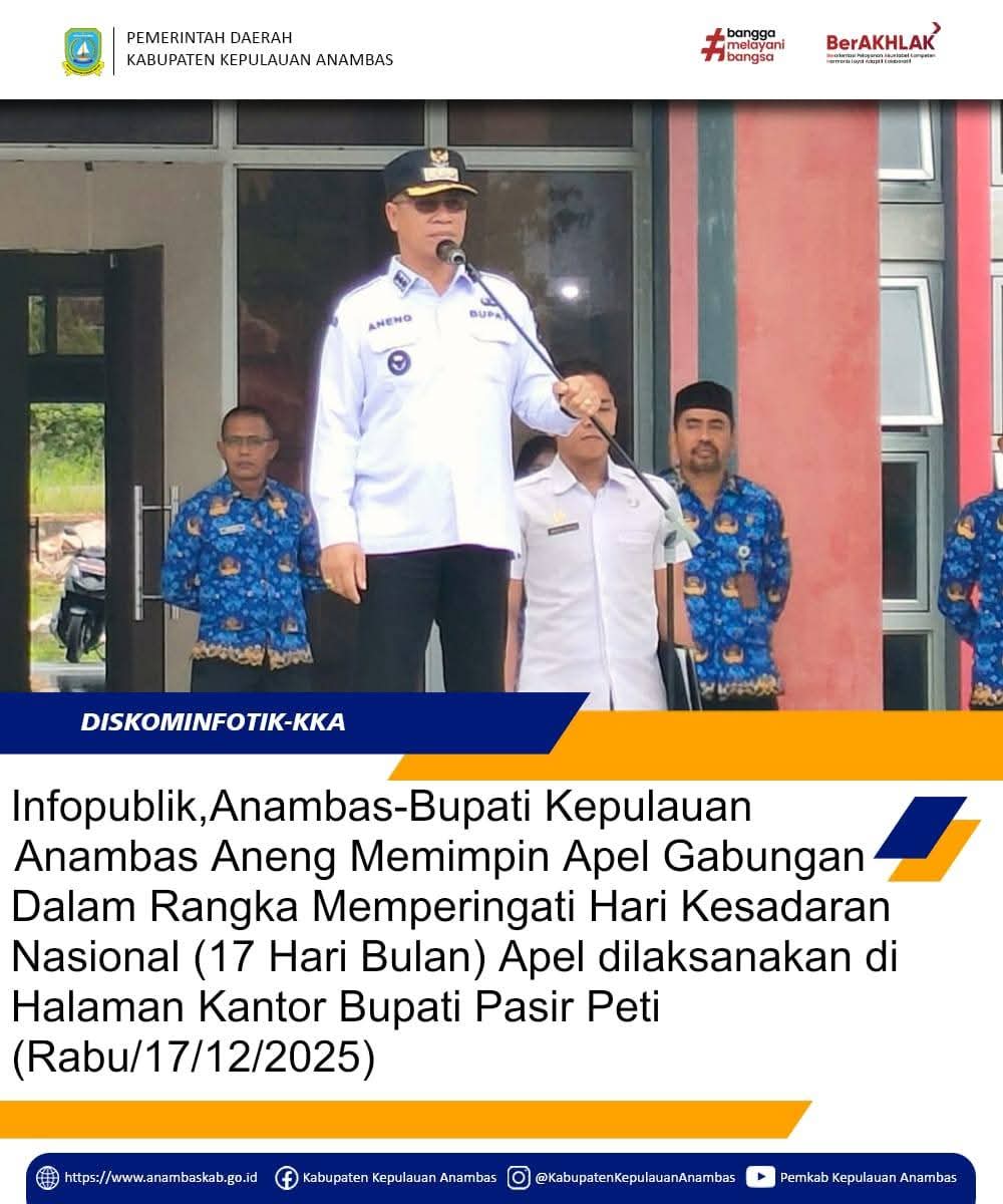 InfoPublik, Anambas - Bupati Kepulauan Anambas, Aneng memimpim Upacara Hari Kesadaran Nasional diakhir tahun 2025, kegiatan yang digelar di halaman Kantor Bupati Kepulauan Anambas Pasir Peti, Rabu (17/12/2025).