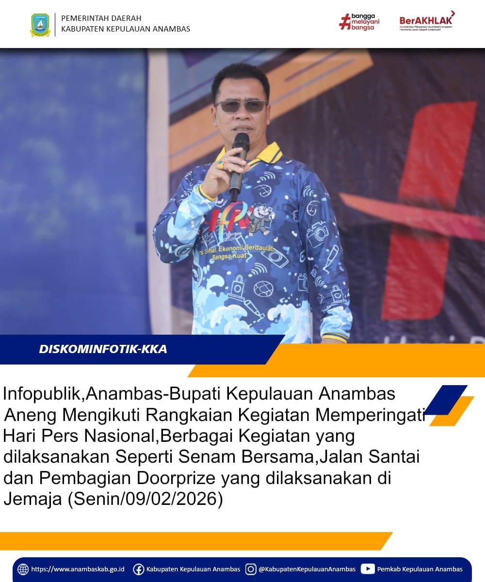 InfoPublik, Anambas – Dalam rangka memperingati Hari Pers Nasional (HPN), insan pers bersama Pemerintah Daerah dan masyarakat Kecamatan Jemaja menggelar kegiatan senam sehat dan jalan santai yang berlangsung meriah dan penuh kebersamaan, pada Senin 09 Februari 2026 di Kecamatan Jemaja.
