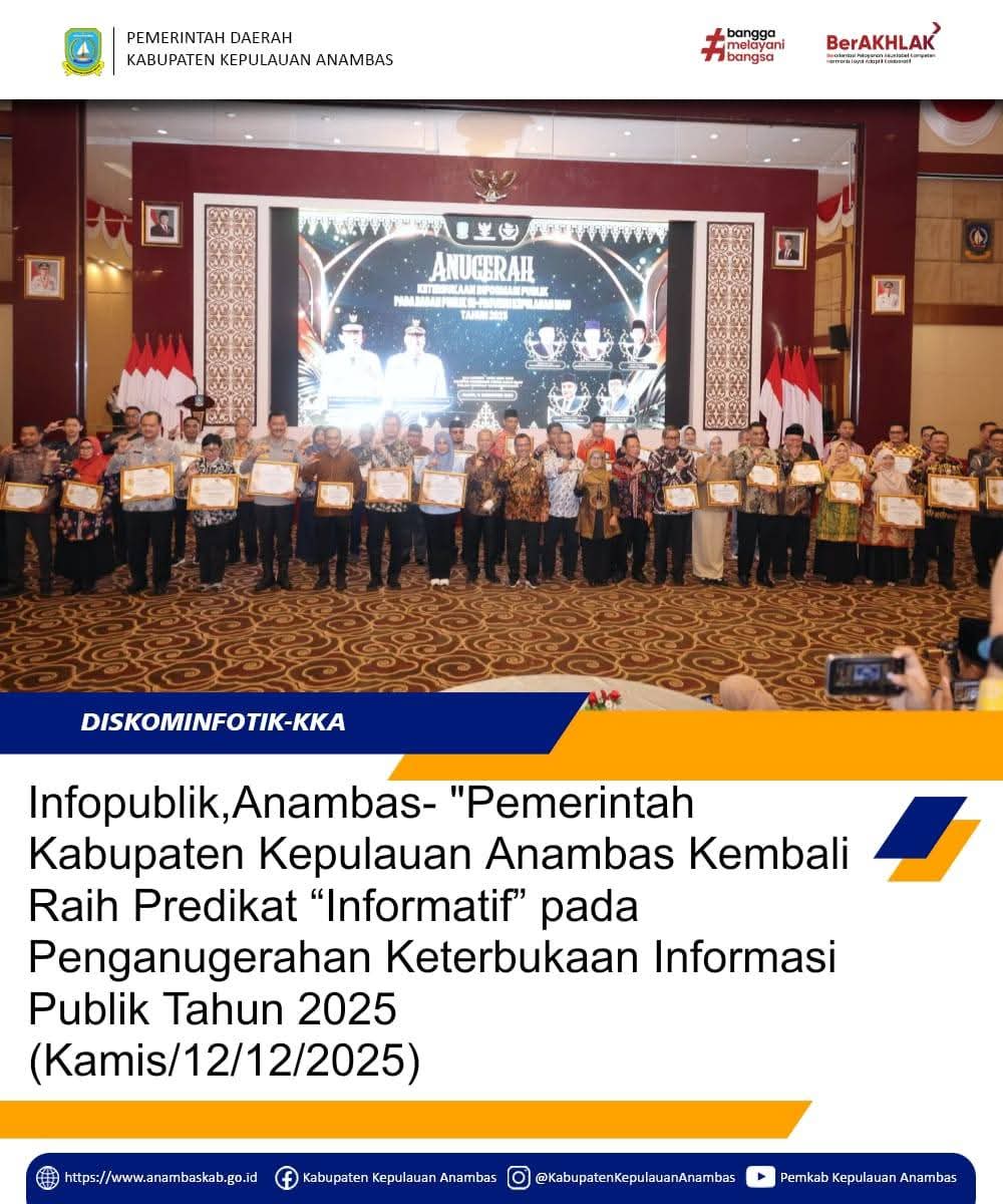 Infopublik,Anambas- ''Pemerintah Kabupaten Kepulauan Anambas Kembali raih Predikat ''Informatif'' pada Penganugrahan Keterbukaan Informasi Publik Tahun 2025 (Kamis, 12/12/2025)