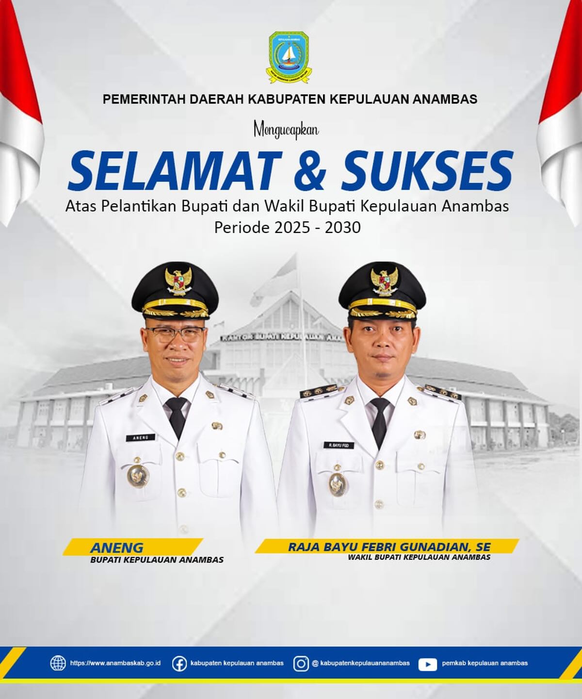 InfoPublik, Anambas - Pemerintah Kabupaten Kepulauan Anambas Mengucapkan Selamat dan Sukses Atas Pelantikan Bupati dan Wakil Bupati Kepulauan Anambas Periode 2025 - 2030.