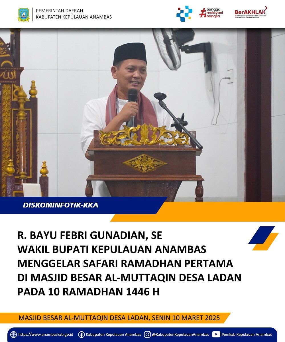 InfoPublik, Anambas - R. Bayu Febri Gunadian, S.E Wakil Bupati Kepulauan Anambas Menggelar Safari Ramadhan Pertama di Mesjid Besar Al - Muttaqin Desa Ladan Pada 10 Ramadhan 1446 H.
