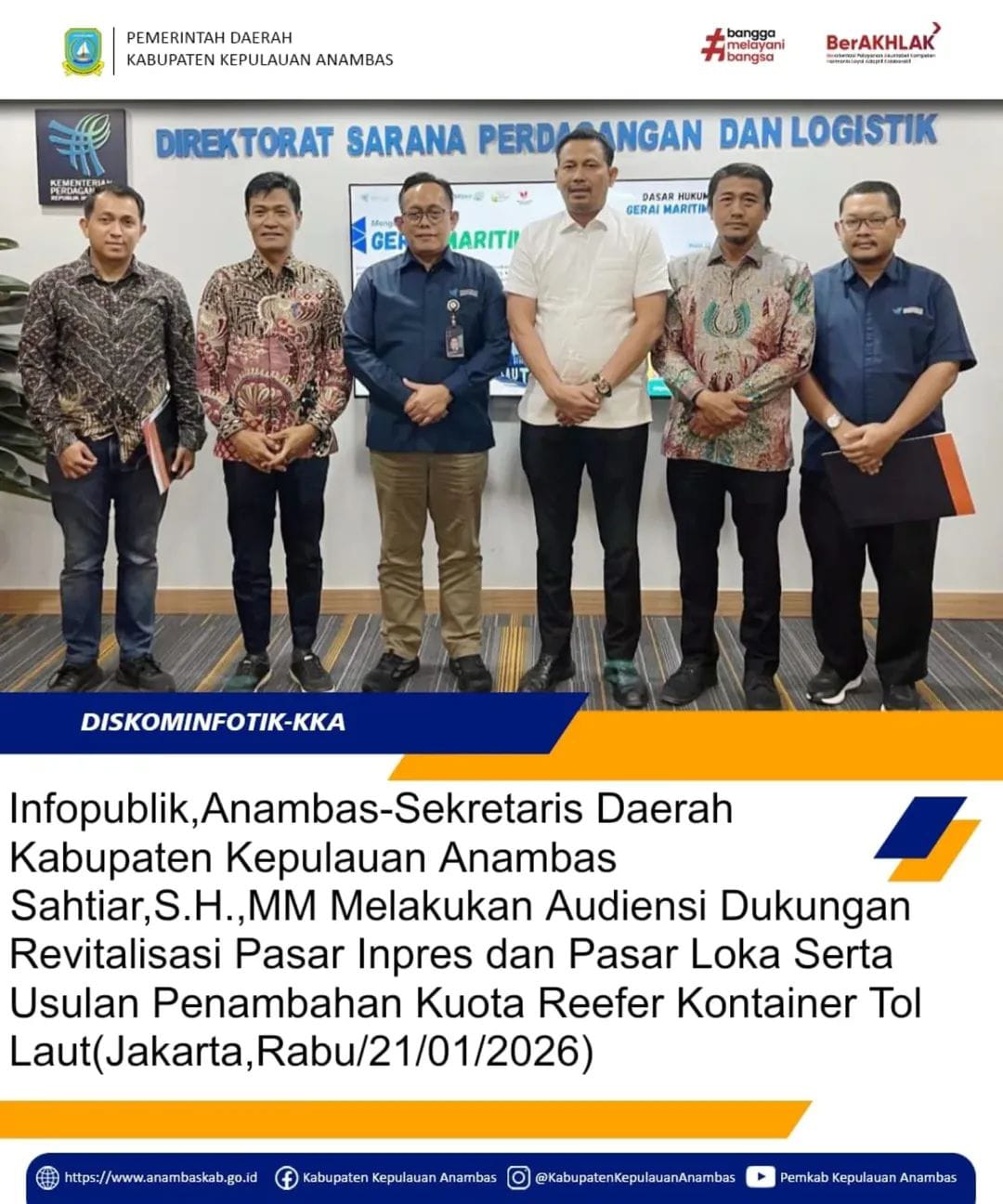 Infopublik,Anambas- Sekretaris Daerah Kabupaten Kepulauan Anambas Sahtiar,S.H.,M.M Melakukan Audiensi Dukungan Revitalisasi Pasar Inpres dan Pasar Loka Serta Usulan Penambahan Kuota Reefer Kontanier Tol Laut (Jakarta,rabu/21/01/2026)