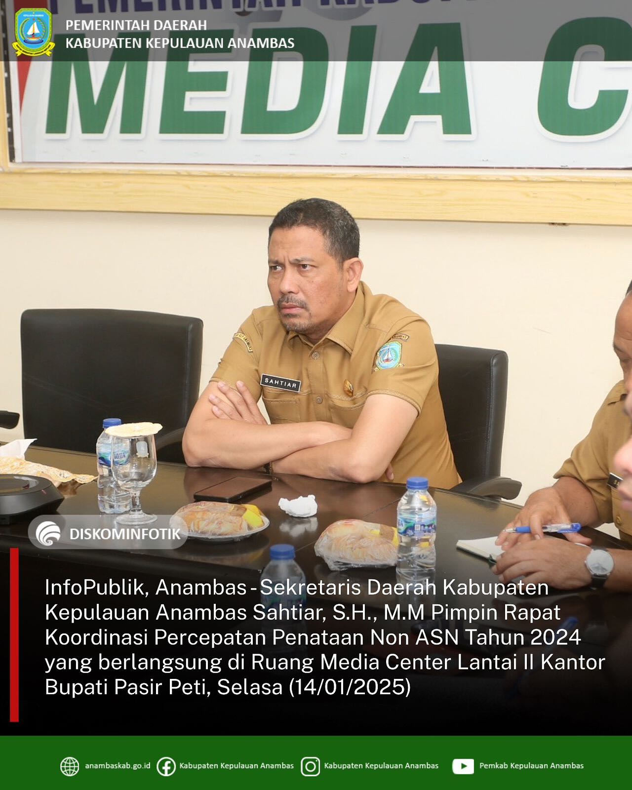 InfoPublik, Anambas - Sekretaris Daerah Kabupaten Kepulauan Anambas Sahtiar, S.H., M.M Pimpin Rapat Koordinasi Percepatan Penataan Non ASN Tahun 2024 yang berlangsung di Ruang Media Center Lantai II Kantor Bupati Pasir Peti, Selasa (14/01/2025)