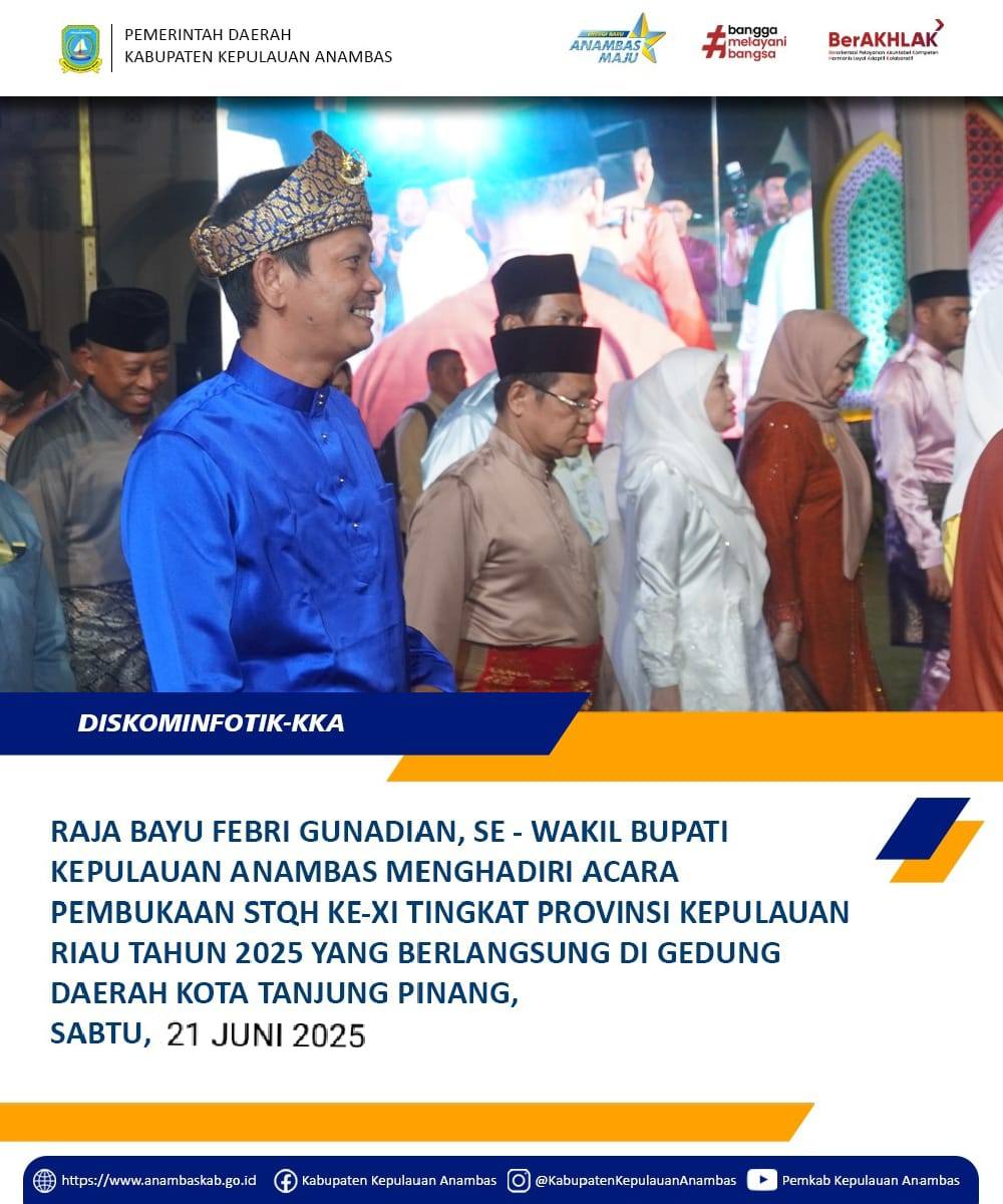 Infopublik,Anambas-Wakil Bupati Kabupaten Kepulauan Anambas Menghadiri acara pembukaan STQH ke-XI tingkat Provinsi Kepulauan Riau Tahun 2025 yang berlangsung di gedung Daerah Kota Tanjung Pinang Sabtu,21 Juni 2025