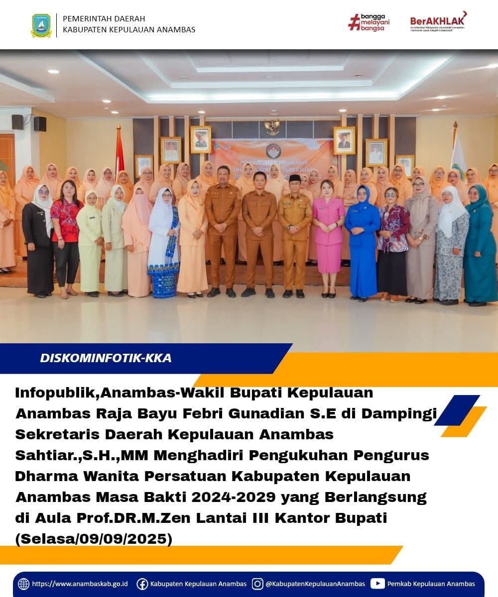 Infopublik,Anambas- Wakil Bupati Kabupaten Kepulauan Anambas Raja Bayu Febri Gunadian S.E di Dampingi Sekretaris Daerah Kepulauan Anambas Sahtiar.,S.H.,MM Menghadiri Pengkuhan Pengurus Dharma Wanita Persatuan Kabupaten Kepulauan Anambas Masa Bakti 2024-2029 yang Berlangsung di Aula Prof.DR.M.Zen Lantai III Kantor Bupati ( Selasa,09/09/2025)
