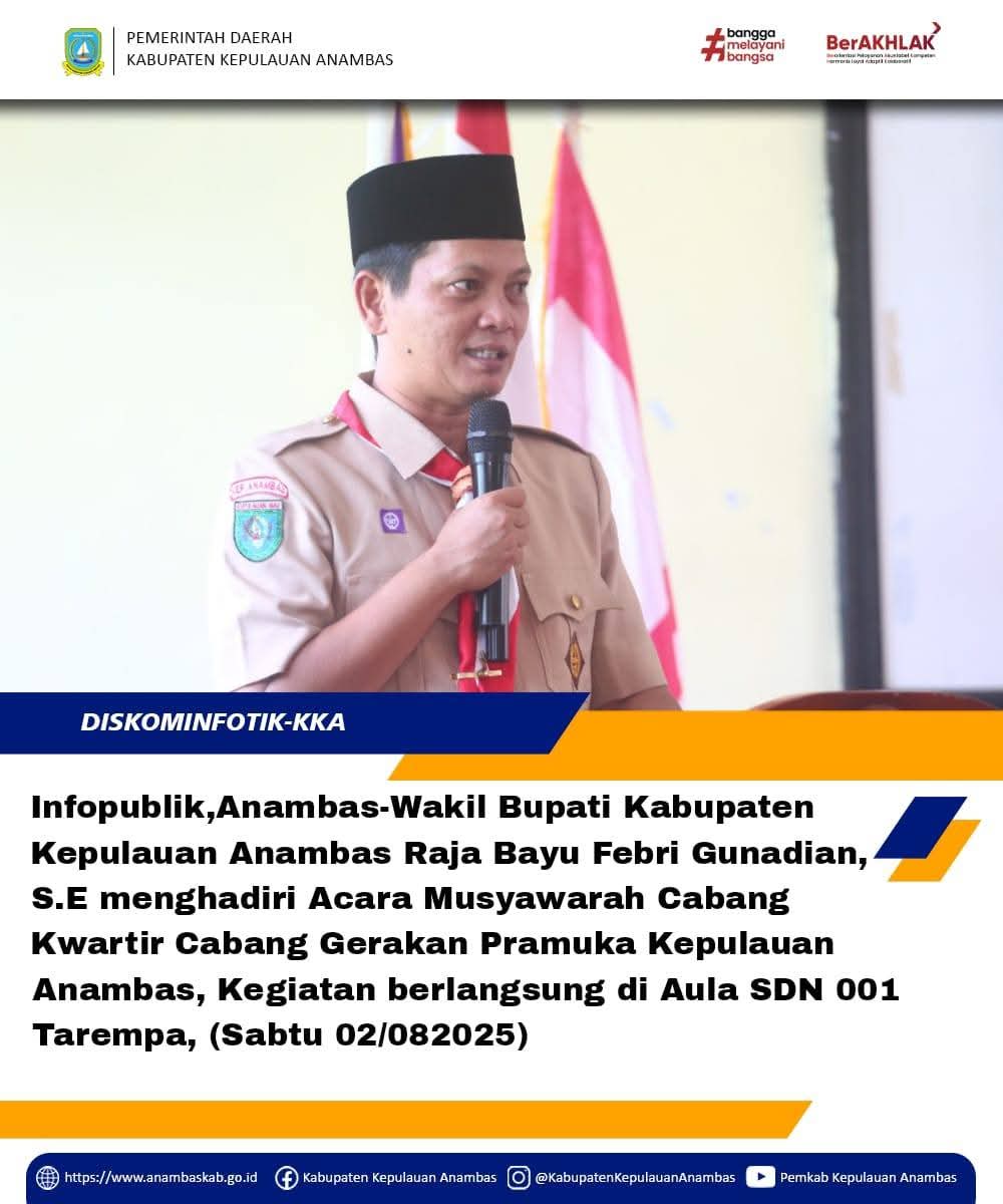 Infopublik,Anambas- Wakil Bupati Kabupaten Kepulauan Anambas Raja Bayu Febri Gunadian,S.E Menghadiri Acara Musyawarah cabang Kwatir cabang Gerakan Pramuka Kepulauan Anambas, Kegiatan berlangsung di Aula SDN 001 Tarempa (Rabu/02/08/2025)