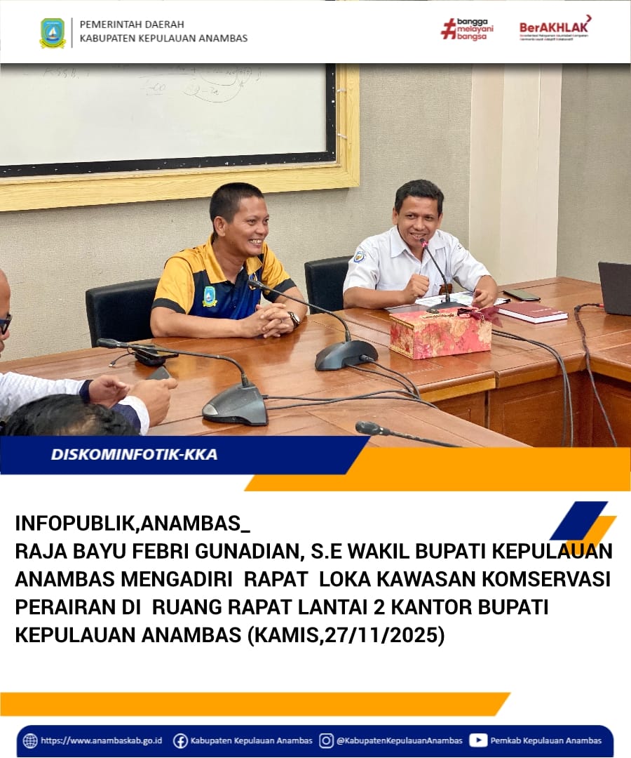 Infopublik,Anambas - Wakil Bupati Kabupaten Kepulauan Anambas Raja Bayu Febri Gunadian S.E Menghadiri Rapat Loka Kawasan Komservasi Perairan di Ruang Rapat Lantai II Kantor Bupati Kabupaten Kepulauan Anambas ( Kamis,27/11/2025)