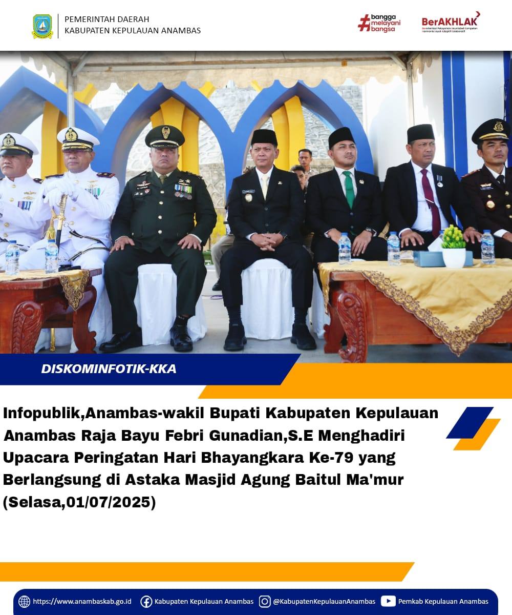 Infopublik,Anambas-Wakil Bupati Kabupaten Kepulauan Anambas Raja Bayu Febri Gunadian,S.E Menghadiri Upacara Peringatan Hari bhayangkara Ke-79 yang Berlangsung di Astaka Masjid Agung Baitul Ma'mur (Selasa,01 Juli 2025)