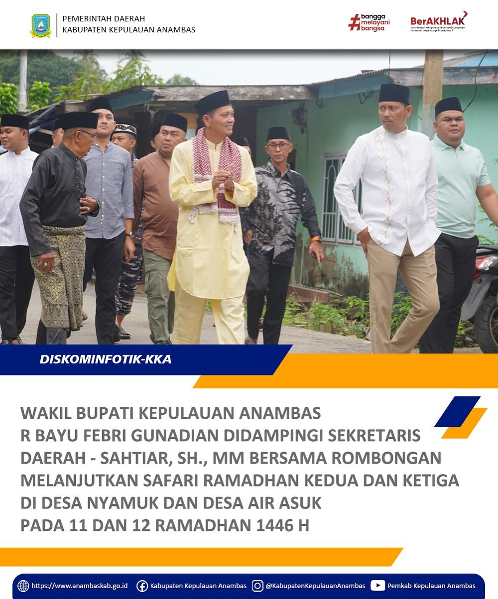 InfoPublik, Anambas - Wakil Bupati Kepulauan Anambas R. Bayu Febri Gunadian didampingi Sekretaris Daerah Sahtiar, S.H., M.M Bersama Rombongan Melanjutkan Safari Ramadhan Kedua dan Ketiga di Desa Nyamuk dan Desa Air Asuk Pada 11 dan 12 Ramadhan 1446 H