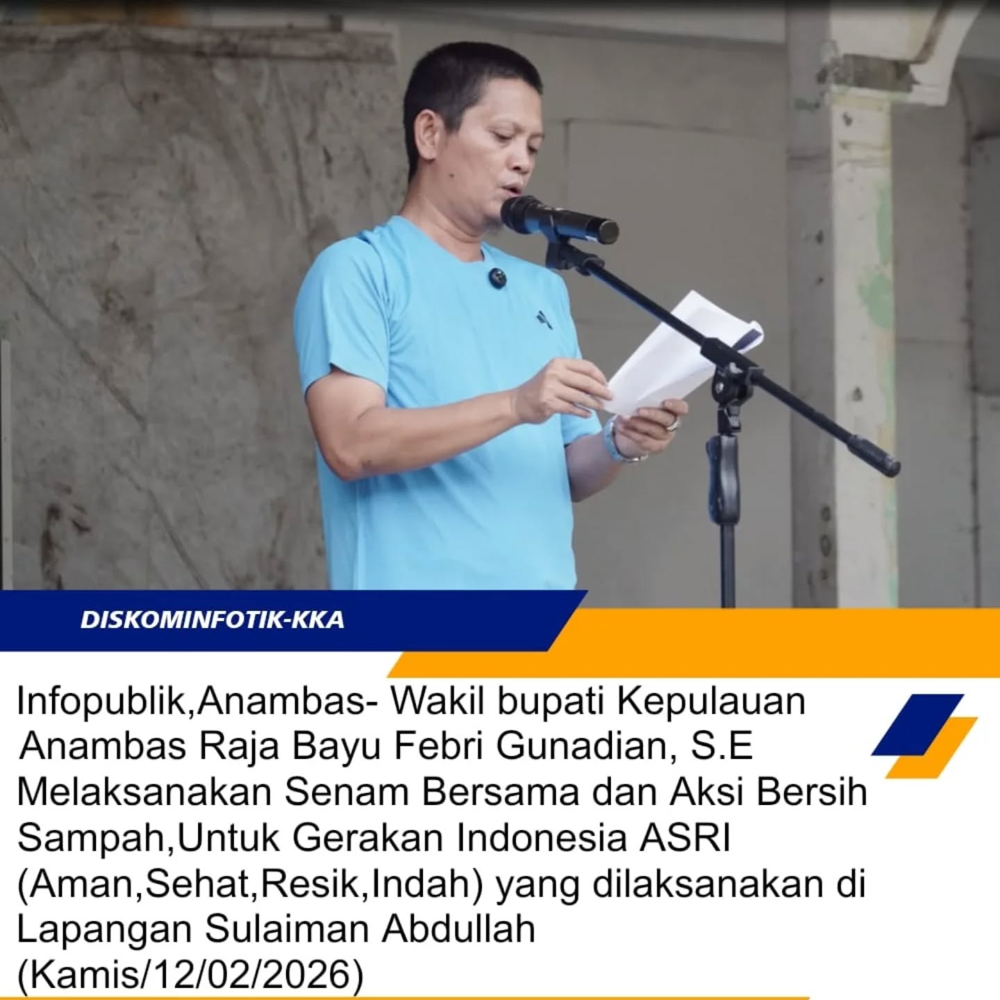InfoPublik, Anambas - Dalam rangka meningkatkan kesadaran masyarakat terhadap pentingnya pola hidup sehat sekaligus kepedulian terhadap kebersihan lingkungan, Wakil Bupati Kepulauan Anambas, Raja Bayu Febri Gunadian, S.E menghadiri dan mengikuti secara langsung kegiatan Senam Bersama dan Gerakan Aksi Bersih Sampah yang dilaksanakan pada Kamis, 12 Februari 2026 bertempat di Lapangan Bola Sulaiman Abdullah Tarempa Kecamatan Siantan.