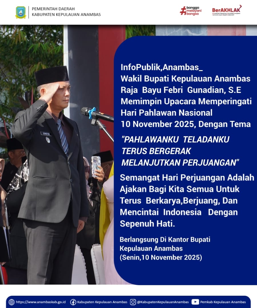 Perjuangan para pahlawan tak berhenti di medan perang, tapi terus hidup dalam semangat kita untuk membangun negeri. Selamat Hari Pahlawan 10 November 2025. Mari kita kenang jasa para pahlawan dan lanjutkan perjuangan mereka dengan kerja nyata, dedikasi, dan semangat kebangsaan.”Raja Bayu Wakil Bupati Kepulauan Anambas