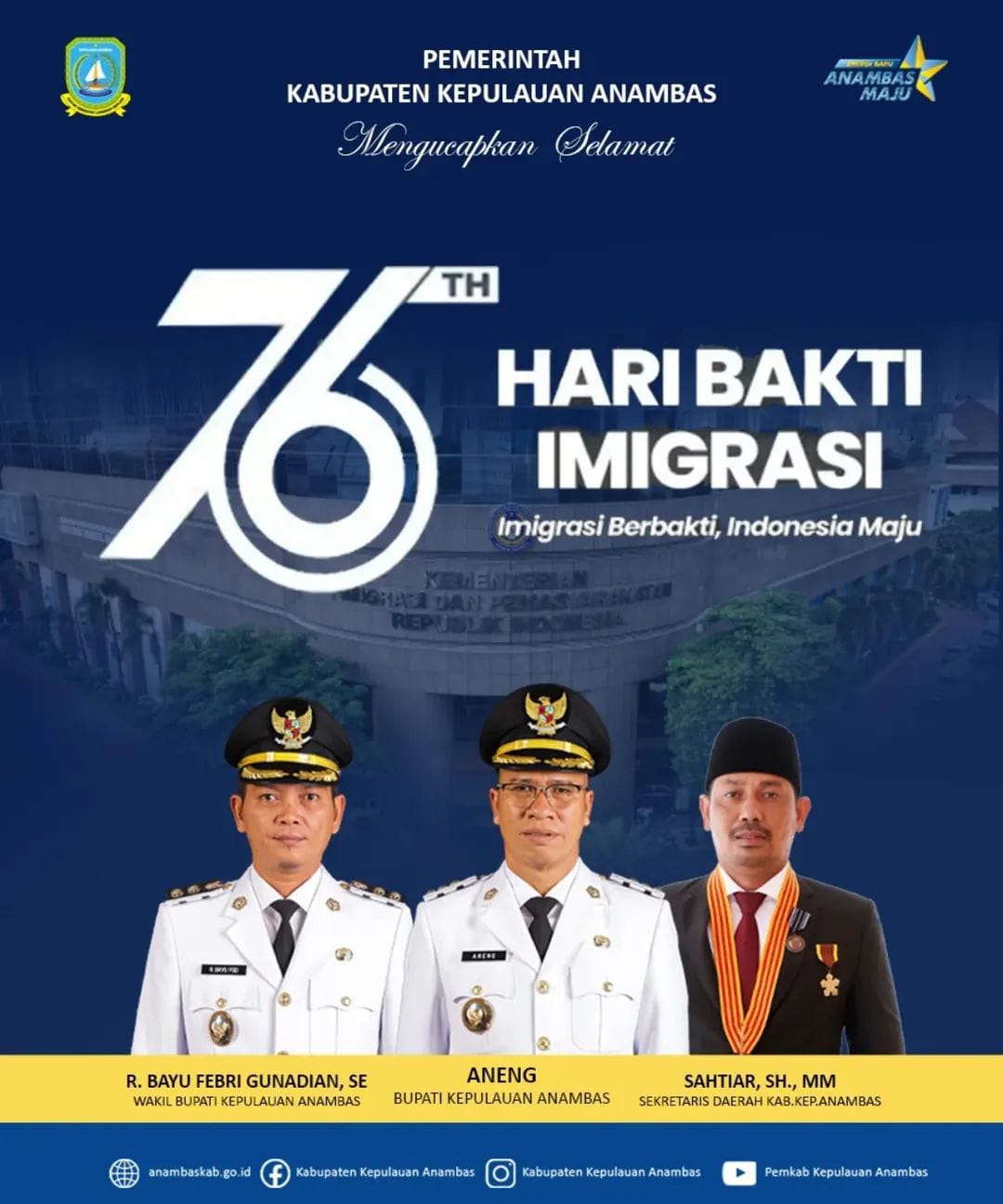 Pemerintah Daerah Kabupaten Kepulauan Anambas mengucapkan Selamat Hari Bakti Imigrasi Tahun 2026 "Imigrasi Berbakti, Indonesia Maju".