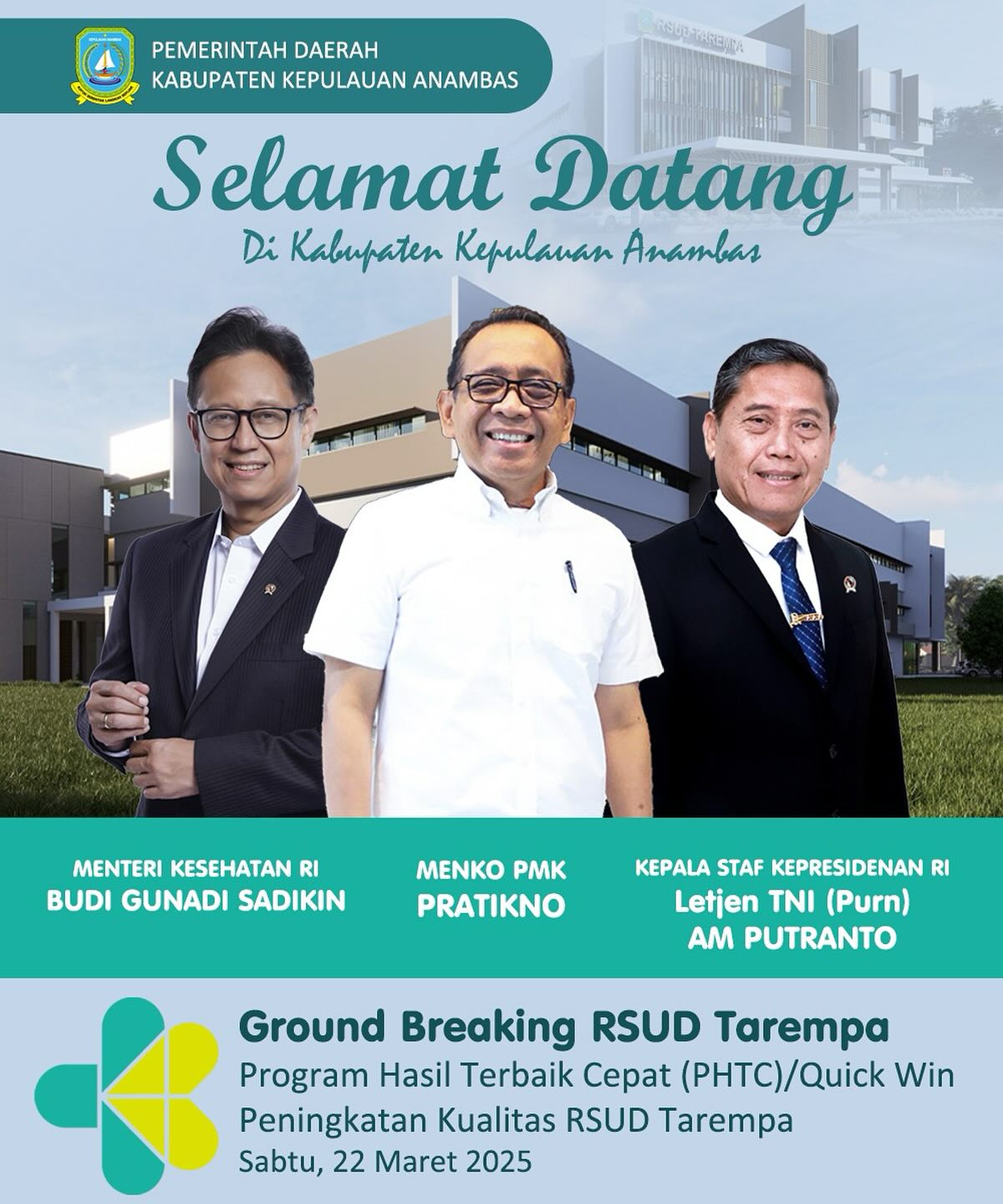 Pemerintah Kabupaten Kepulauan Anambas Mengucapkan Selamat Datang Bapak Menteri Kesehatan RI, Menko PMK, serta Kepala Staf Kepresidenan RI di Kepulauan Anambas