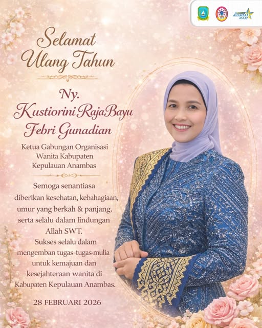 Pemerintah Kabupaten Kepulauan Anambas mengucapkan Selamat Ulang Tahun kepada Ibu Wakil Bupati Ny. Kustiorini Raja Bayu.