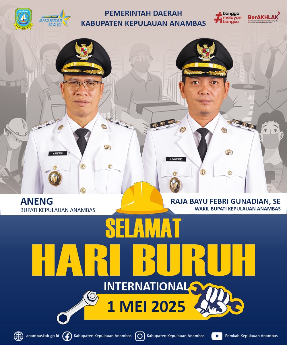 Bupati dan Wakil Bupati Kepulauan Anambas mengucapkan Selamat Hari Buruh Internasional 1 Mei 2025.