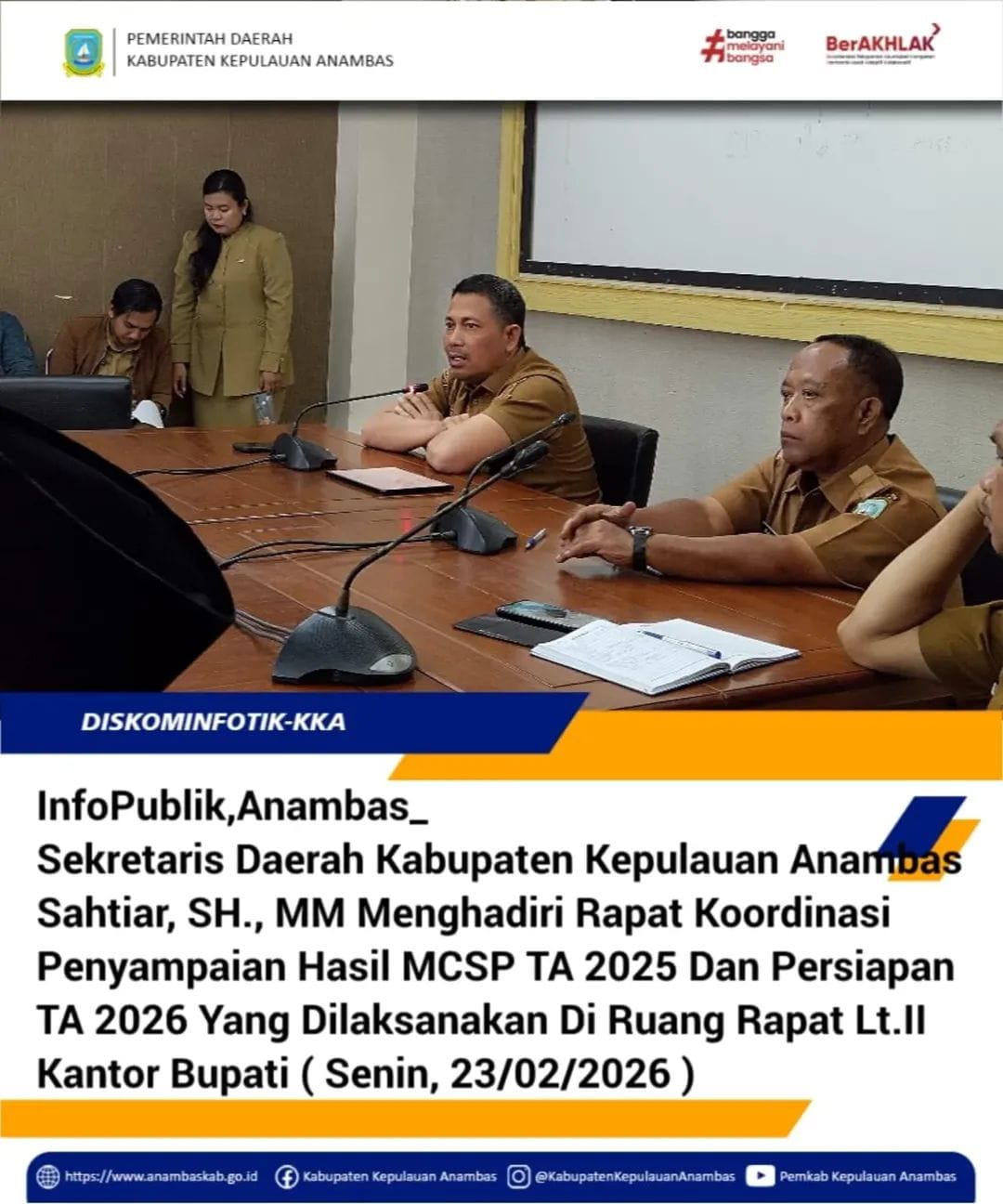 Sekda Kabupaten Kepulauan Anambas Sahtiar,SH.,MM hadir dalam Rakor Penyampaian MCSP 2025 dan Persiapan TA 2026 sebagai bentuk komitmen pemerintah daerah dalam memastikan perencanaan berjalan sistematis, terukur, dan berorientasi hasil.