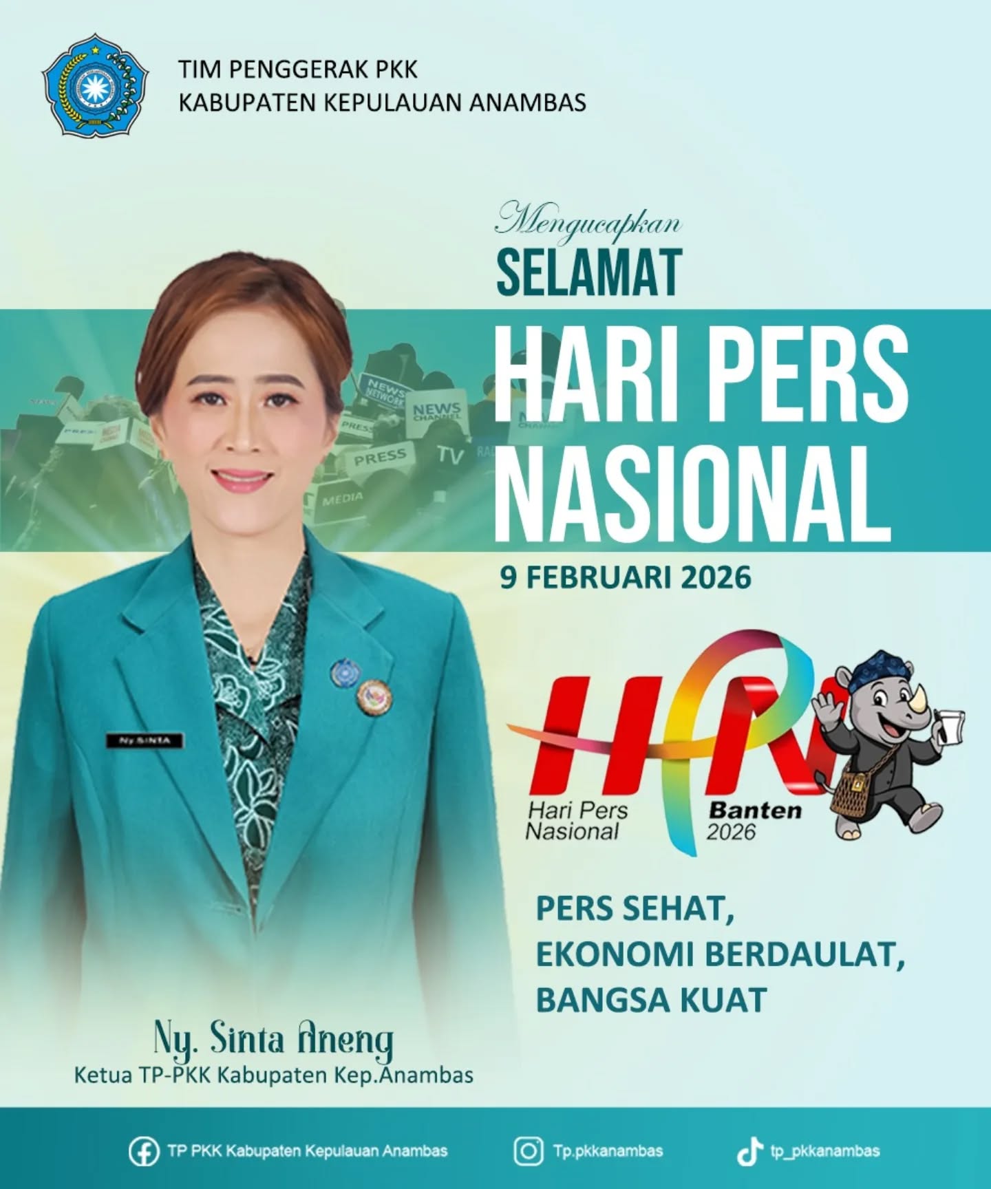 Selamat Hari Pers Nasional 2026 Di era keterbukaan informasi, pers menjadi mitra penting TP-PKK Kabupaten Kepulauan Anambas dalam menyampaikan program, nilai, dan semangat pemberdayaan perempuan di tengah keluarga secara luas dan berkelanjutan.
