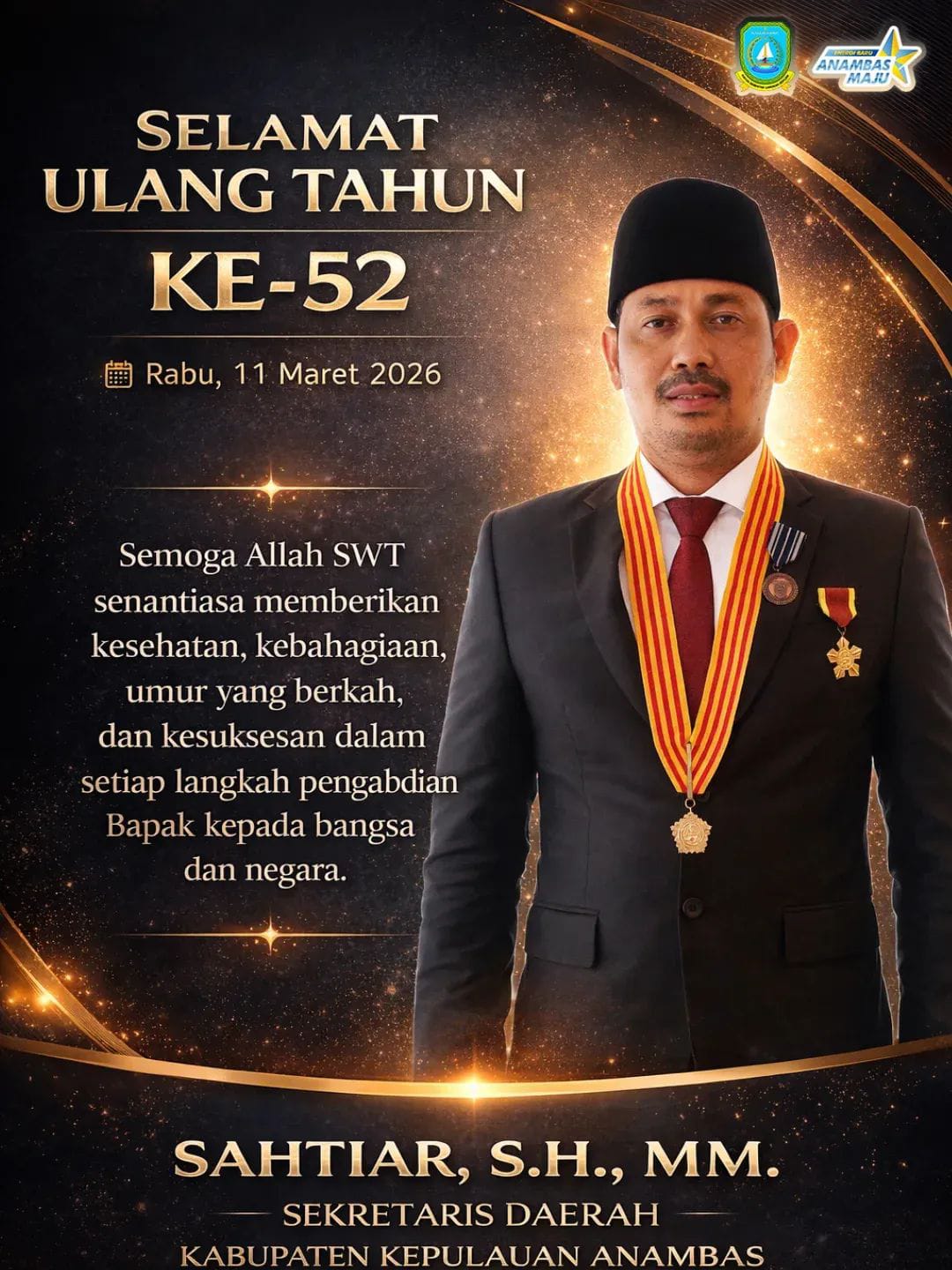 Selamat ulang tahun Bapak Sahtiar, S.H.,M.M Sekretaris Daerah Kabupaten Kepulauan Anambas.