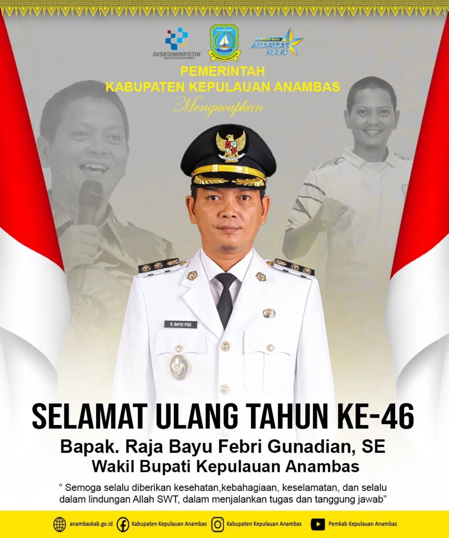Selamat ulang tahun yang ke-46 kepada Wakil Bupati Kepulauan Anambas, Raja Bayu Febri Gunadian, S.E